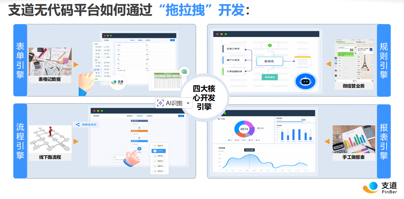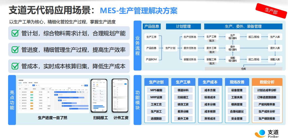 以浙江支点数字科技旗下的“支道”一站式业务管理平台为例,我们可以看到这类平台是如何解决生产进度跟踪难题的: