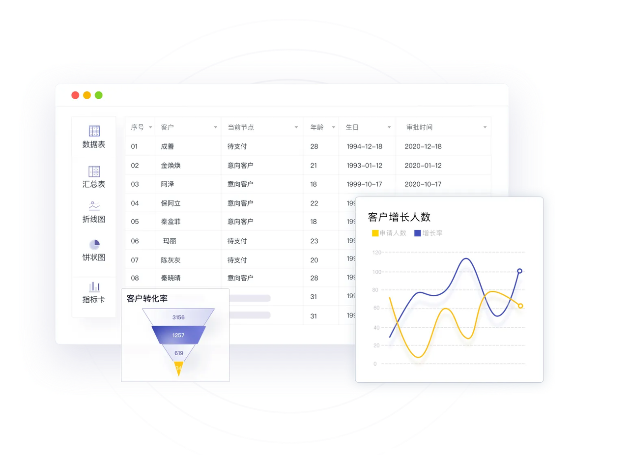 实战点评:继承了帆软强大的报表基因,仪表盘非常漂亮,表单填报体验极佳。非常适合职能部门用来做问卷调查、设备巡检或行政统计。短板在于复杂业务流转和系统集成能力相对较弱。